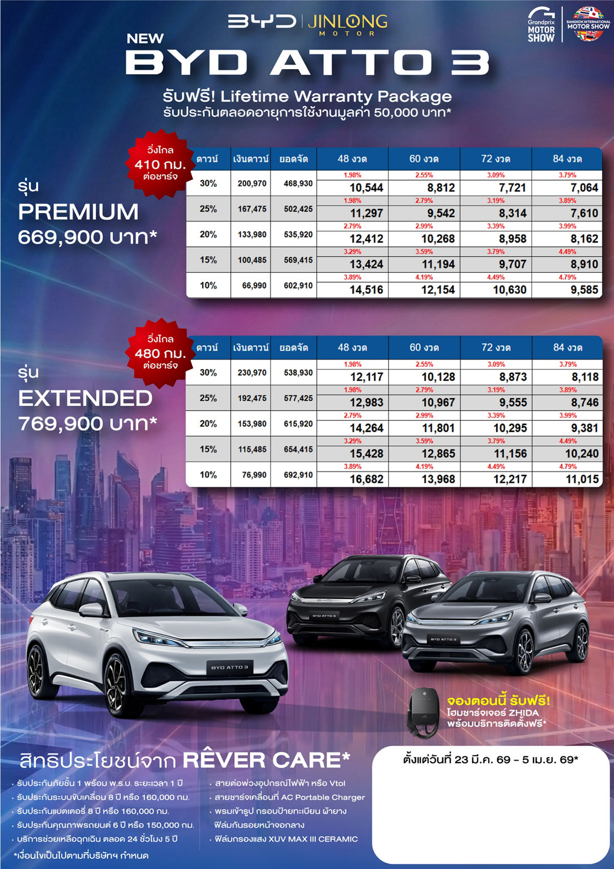 ราคาและตารางผ่อน NEW BYD ATTO 3 ตั้งแต่วันที่ 23 มี.ค. 69 – 5 เม.ย. 69