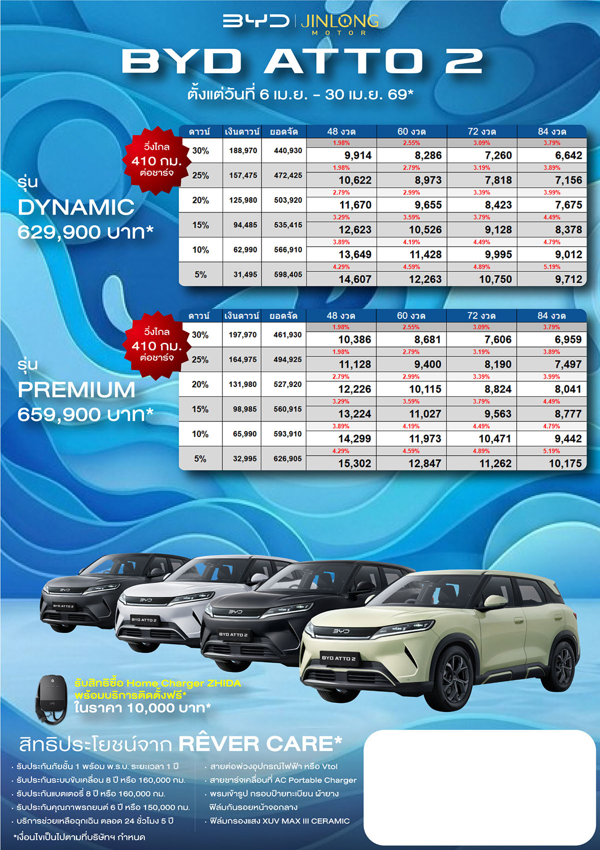 ราคาและตารางผ่อน BYD ATTO 2 ตั้งแต่วันที่ 6 เม.ย. 69 – 30 เม.ย. 69*