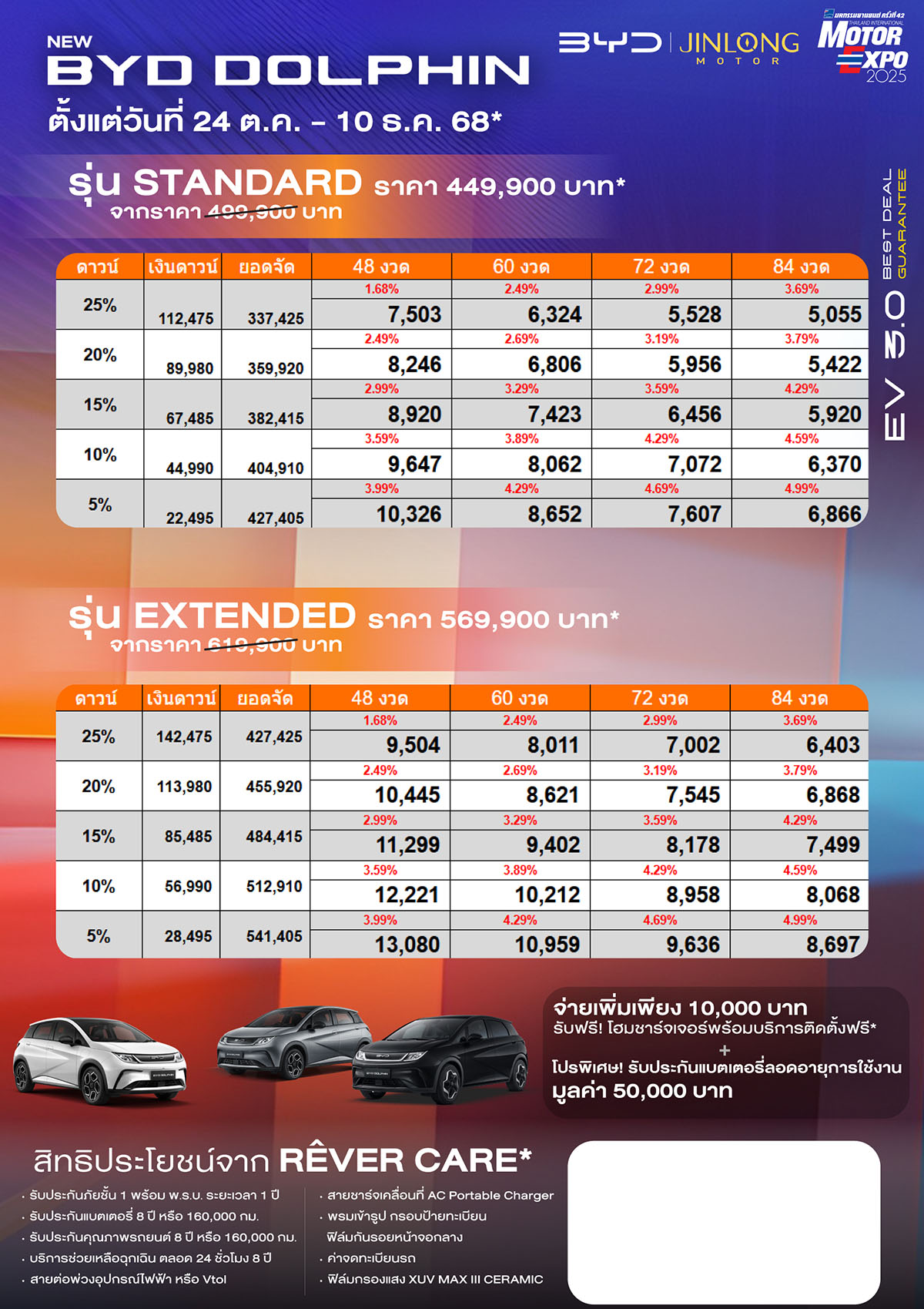 ราคาและตารางผ่อน BYD DOLPHIN (โปร Motor Expo 2025)