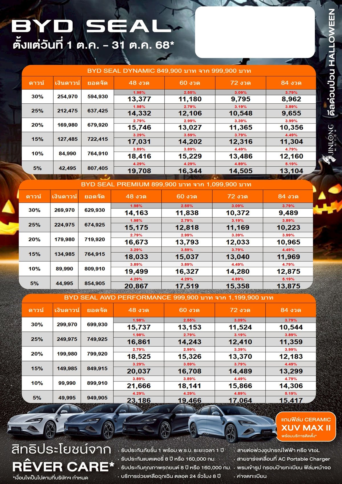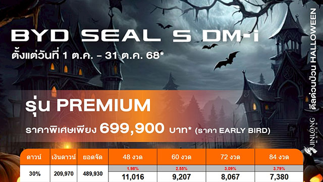 ราคาและตารางผ่อน BYD SEAL 5 DM-i ตั้งแต่วันที่ 1 - 31 ตค. 68 บีวายดี จินหลง สาขาแจ้งวัฒนะ