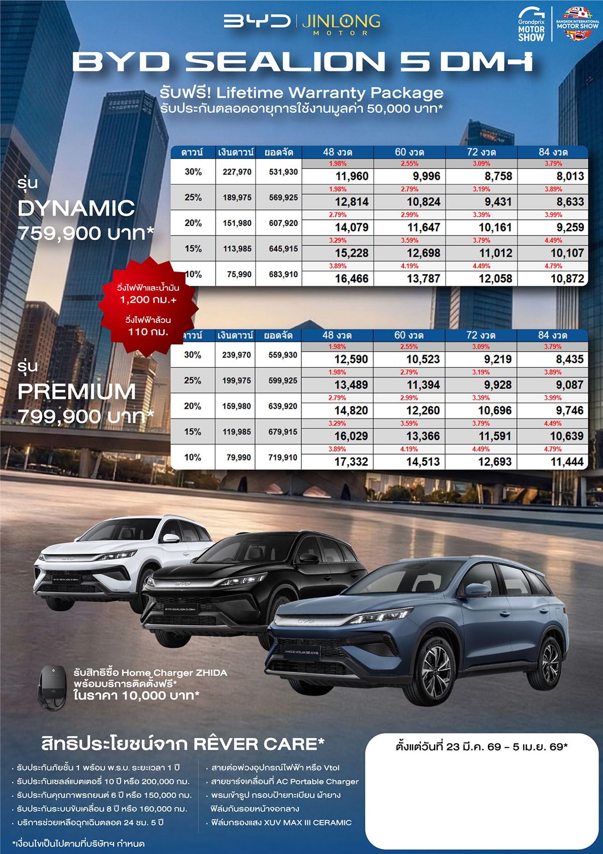 ราคาและตารางผ่อน BYD SEALION 5 DM-i ตั้งแต่วันที่ 23 มี.ค. 69 – 5 เม.ย. 69*