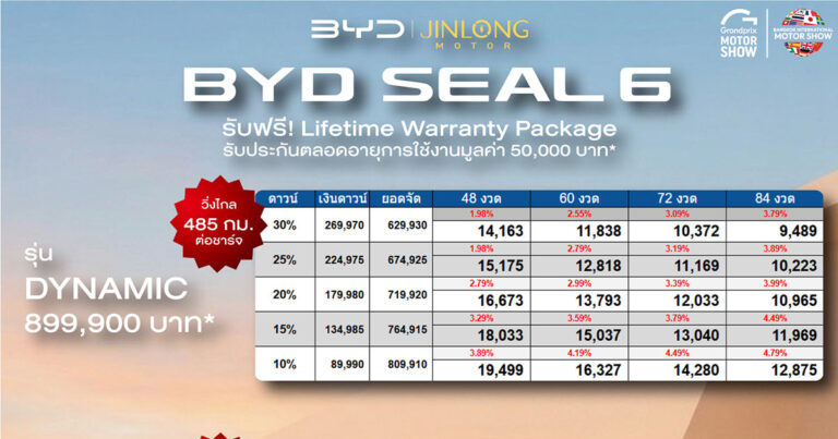 ราคาและตารางผ่อน BYD SEALION 5 DM-i ตั้งแต่วันที่ 23 มี.ค. 69 – 5 เม.ย. 69*
