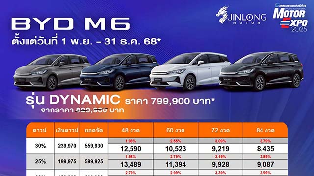 ราคาและตารางผ่อน BYD M6 ตั้งแต่วันที่ 1 พย. - 31 ธค. 68 บีวายดี จินหลง สาขาแจ้งวัฒนะ