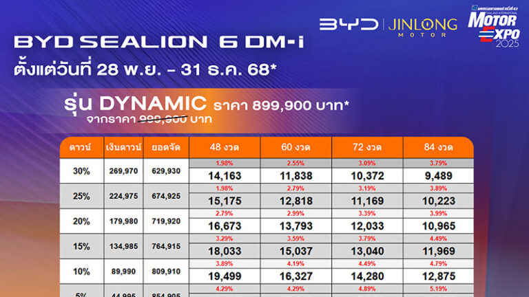 ราคาและตารางผ่อน BYD SEALION 6 DM-i ตั้งแต่วันที่ 28 พย. - 31 ธค. 68